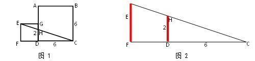 【问题】大小两个正方形拼成下图1,大正方形ABCD的边长是6cm。连接EC与AD相交于点H,并且DH=2cm。请问小正方形EFDG的面积是多少?