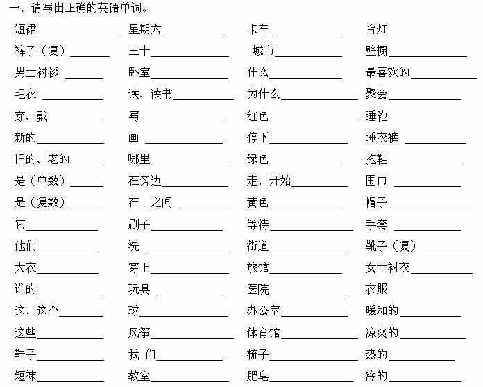 小学英语:单项测试(一)(冀教版四年级上)无答案