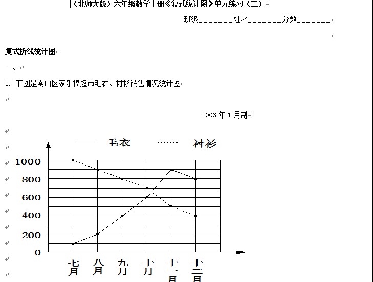 北师大版小学六年级上册数学(复试统计图)单元练习试题(数学)无答案