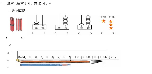 四川省简阳市2011学年一年级上学期学习目标评价笔试检测题(数学)无答案