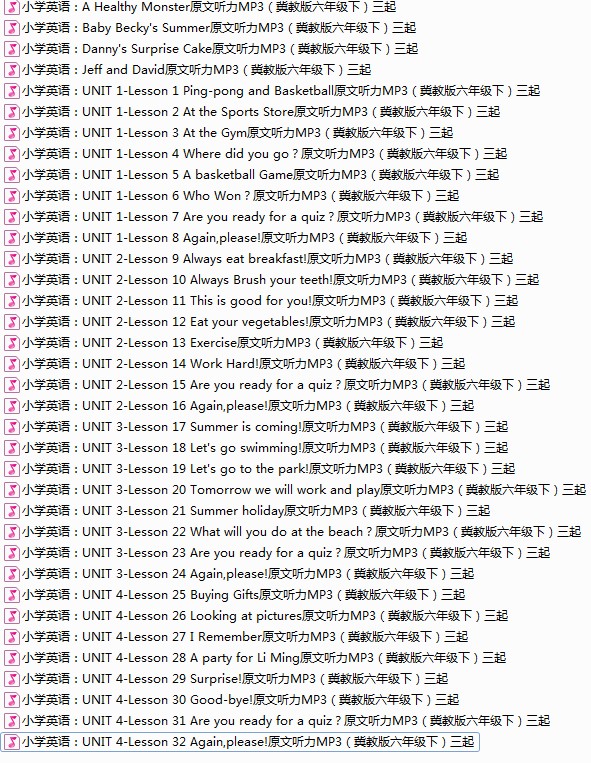 小学英语:原文听力MP3【全册打包36套】(冀教版六年级下)三起