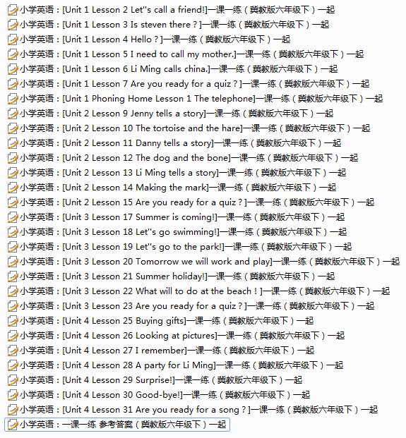 小学英语 冀教版六年级下一课一练【打包29套 含答案】