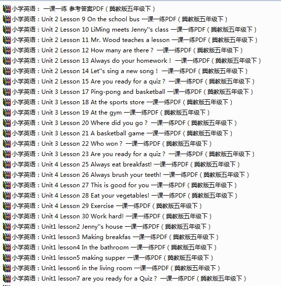 小学英语:冀教版五年级下一课一练PDF【打包27套含答案】