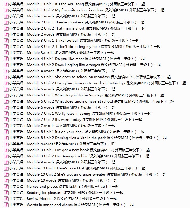 小学英语外研版三年级下课文朗读MP3【打包34套】