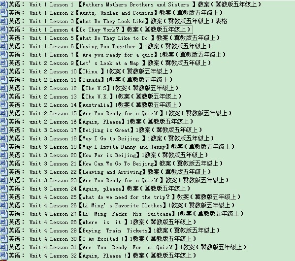 【打包】英语:全册教案 打包下载(冀教版五年级上)