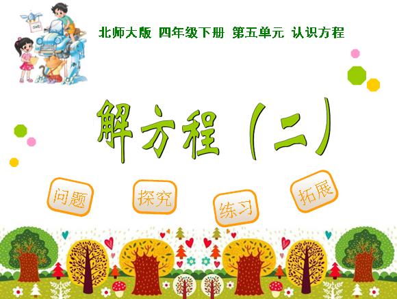 2015年新北师大版四年级数学下册课件:第5单元 解方程二